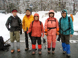 小雪の舞う中での昼食、吹雪く中の稜線歩き、視界のきかない山頂と厳しい内容になりましたが、
